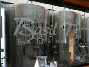 Today I met a fellow home brewer, Pete, down in Red Bank NJ at a local Brew pub that he said I had to try, Basil T’s. How could I possibly turn that down, you don’t have to twist my arm to go to a brew pub. It pretty evident this pub has been around for awhile, it has a loyal following by the hundreds of personal mugs hanging from the ceiling.